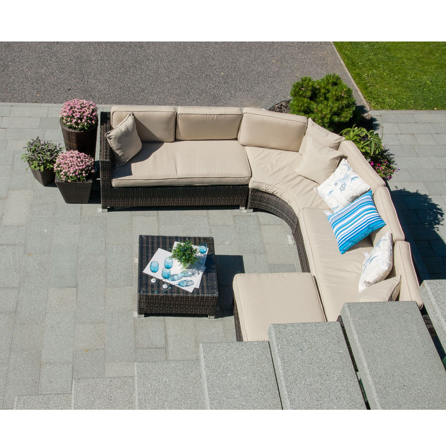 Toode on muutlikes ilmastikutingimustes vastupidav ja väga lihtsalt hooldatav, kaitset ilmastikutingimuste eest vajavad ainult padjad. Välitingimustes kasutatava mööbli eluea pikendamiseks soovitame kasutada välimööbli katteid.