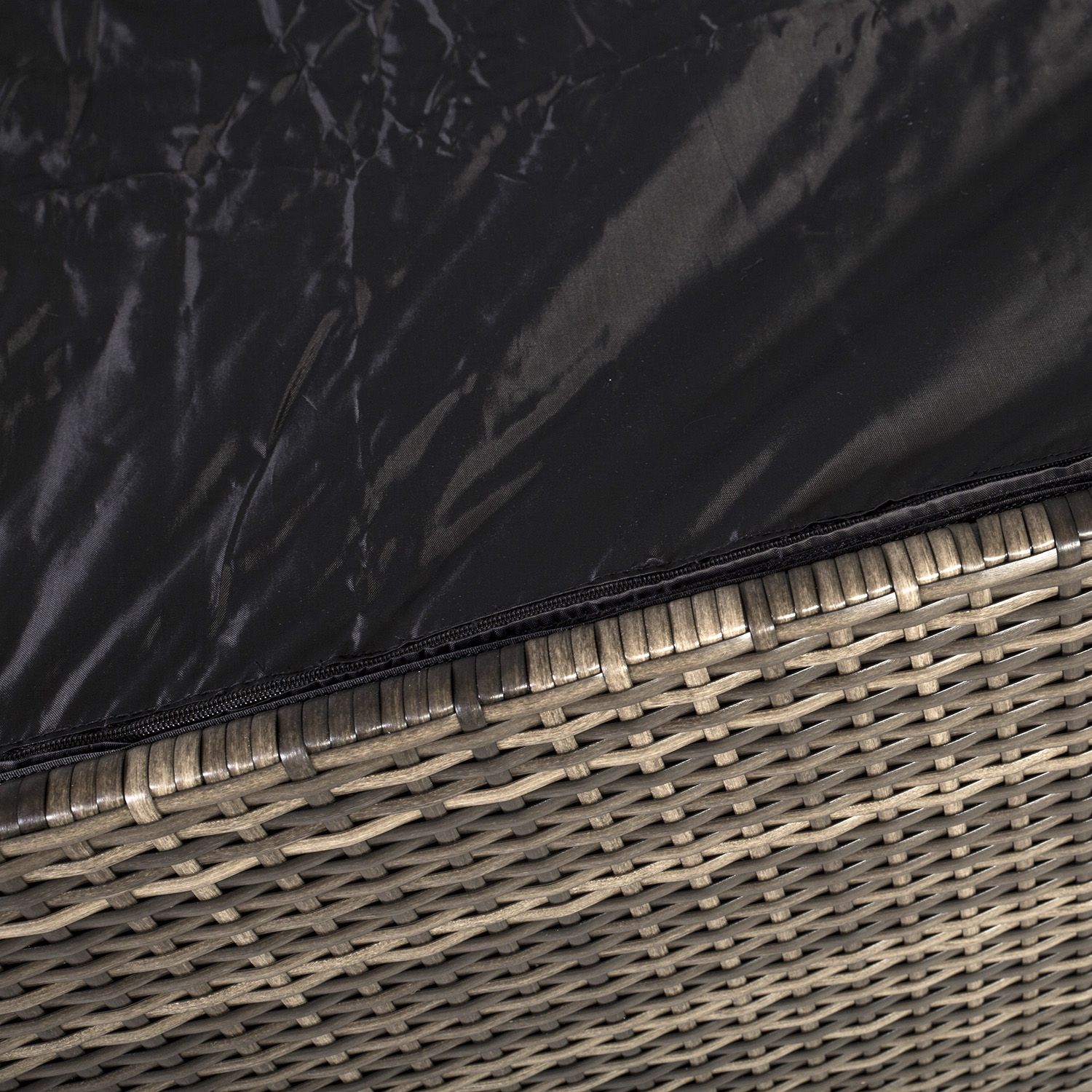 Padjakasti terasraam on kaetud plastikpunutisega. Kasti sees on must polüesterkangast vooder.