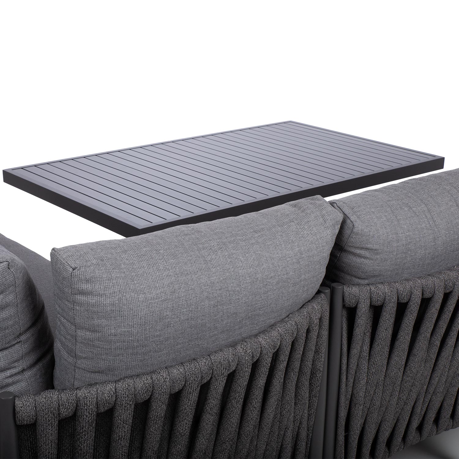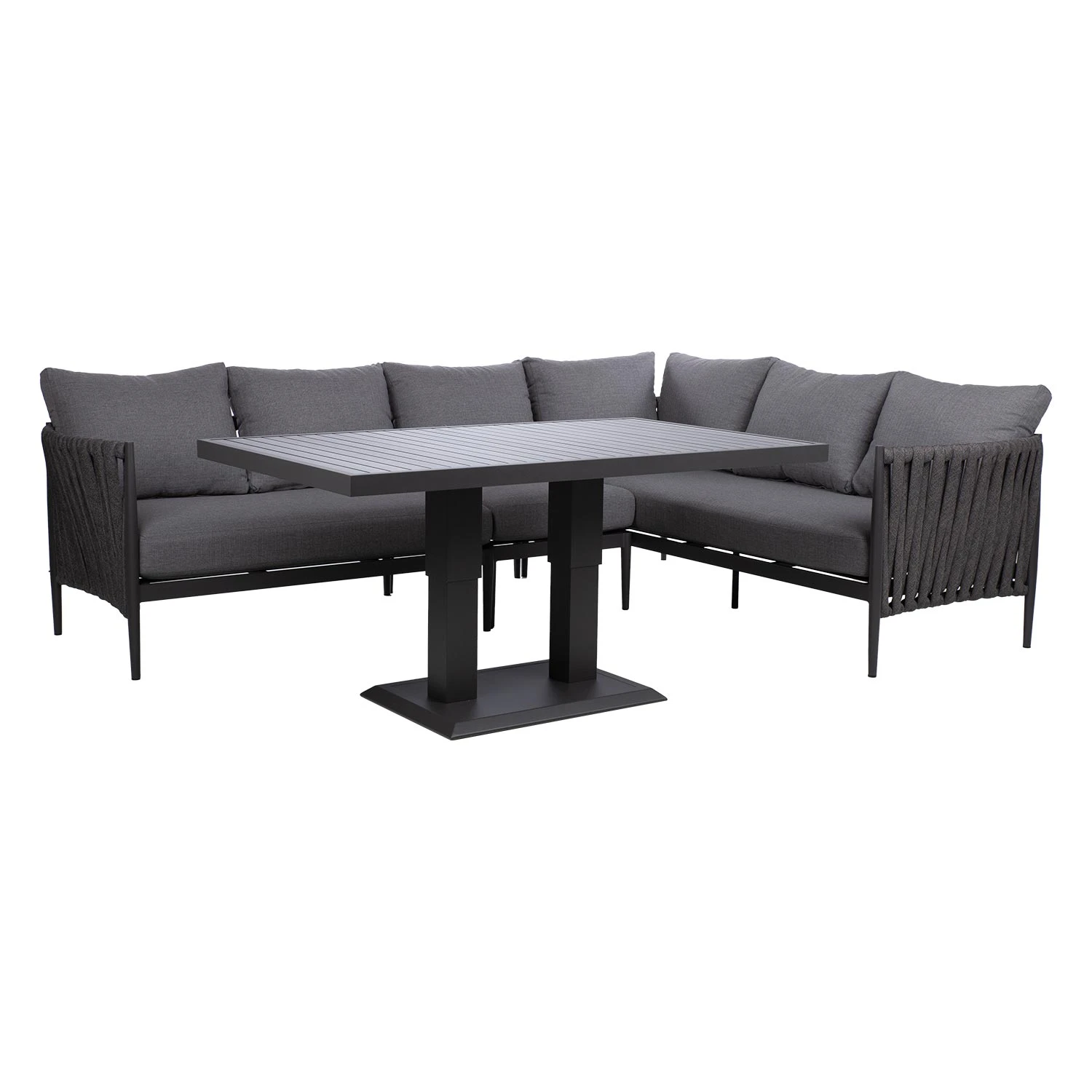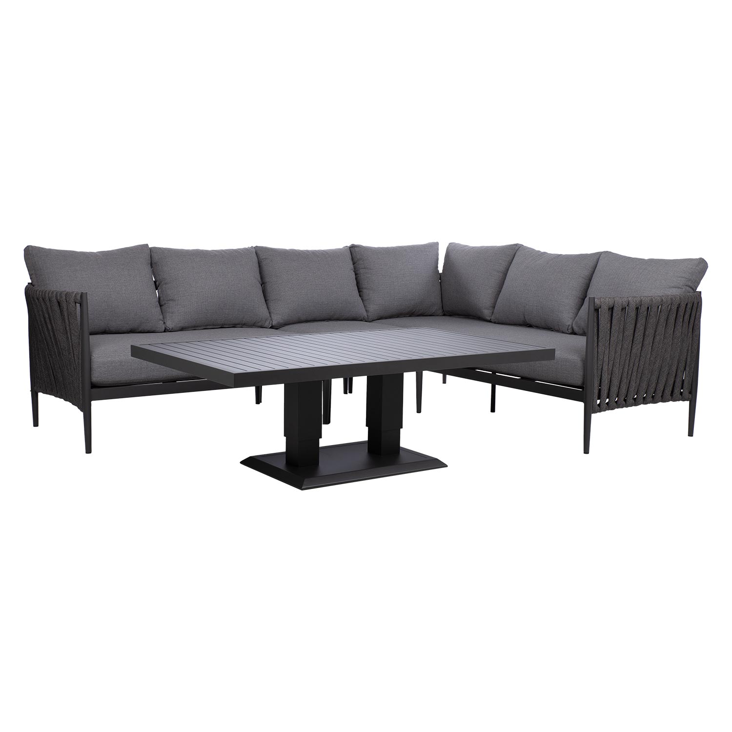Aiamööblikomplekt BRISTOL nurgadiivan ja muudetava kõrgusega laud, hall.