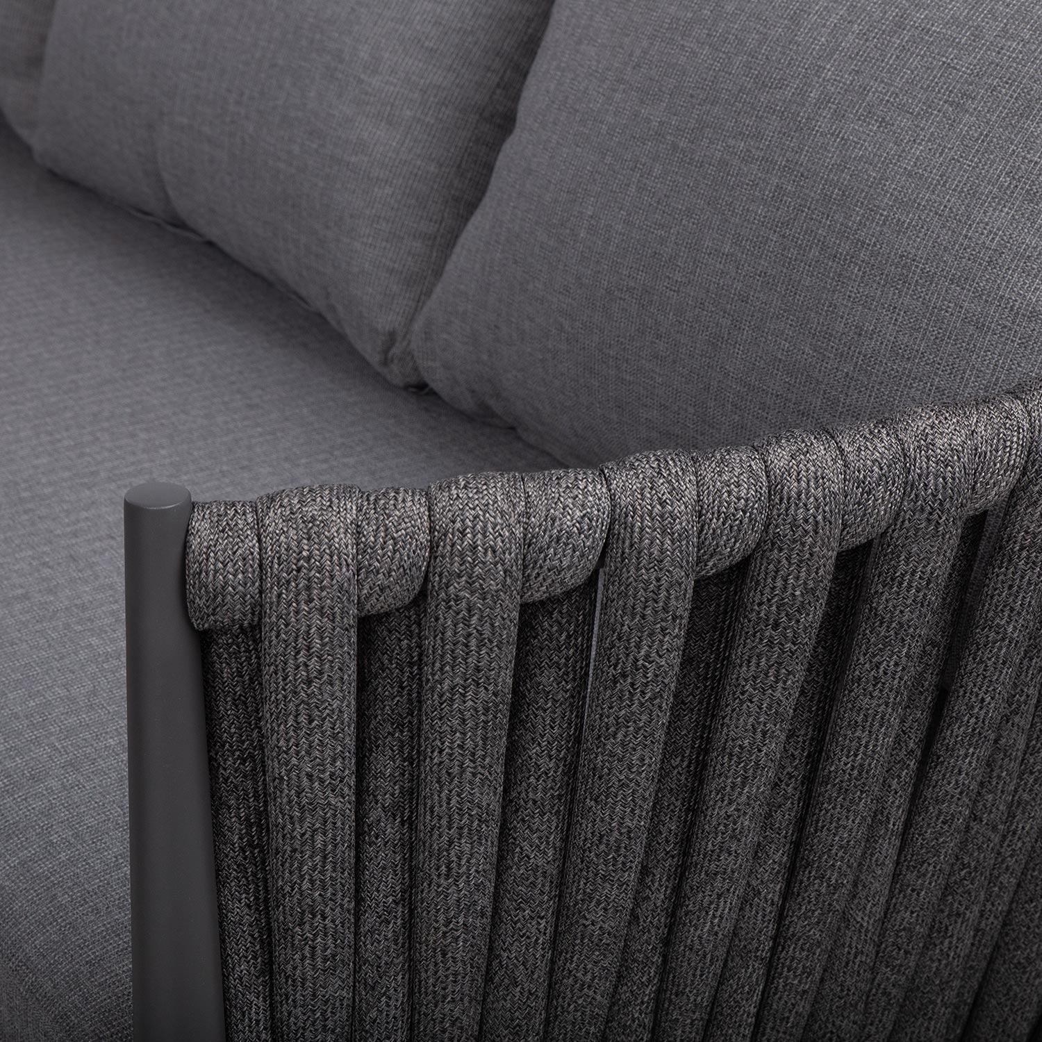 Diivani seljatoed ja küljed on kaetud efektse laia nöörpunutisega.
