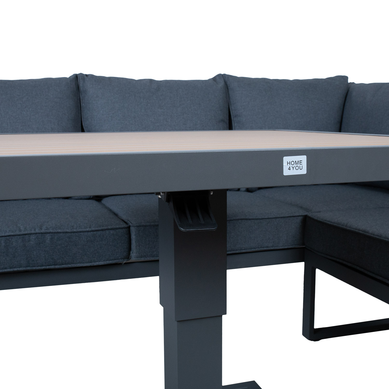 Komplekti kõigi osade raamid on valmistatud alumiiniumist ja viimistletud halli pulbervärviga. Lauaplaadi ja tooli käetugede naturaalse puidusüü tekstuuri meenutav pinnaviimistlus on saavutatud termosiirdetrüki meetodil. Sel viisil viimistletud pind on väga vastupidav ja talub hästi nii päikesekiirgust, kui kergemaid kriimustusi.