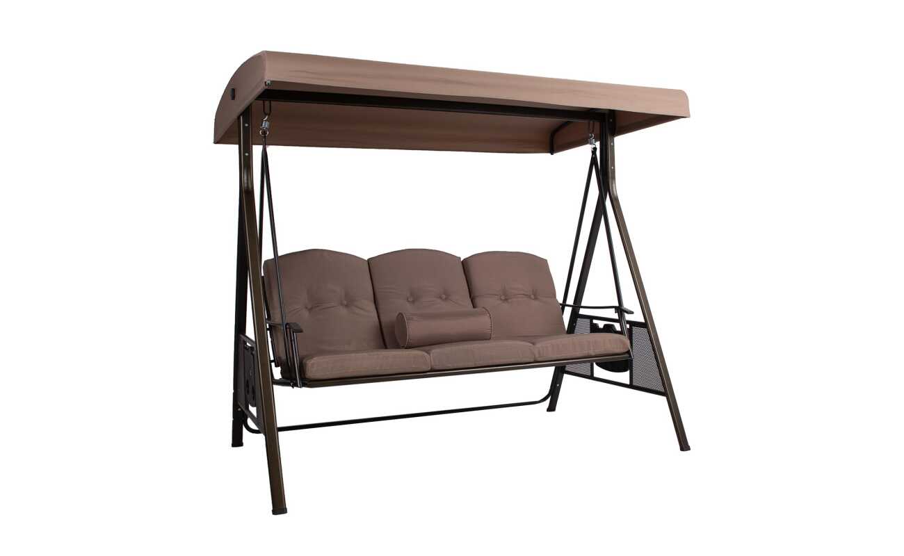 Kiige tugev ja stabiilne terasraam on viimistletud halli pulbervärviga.