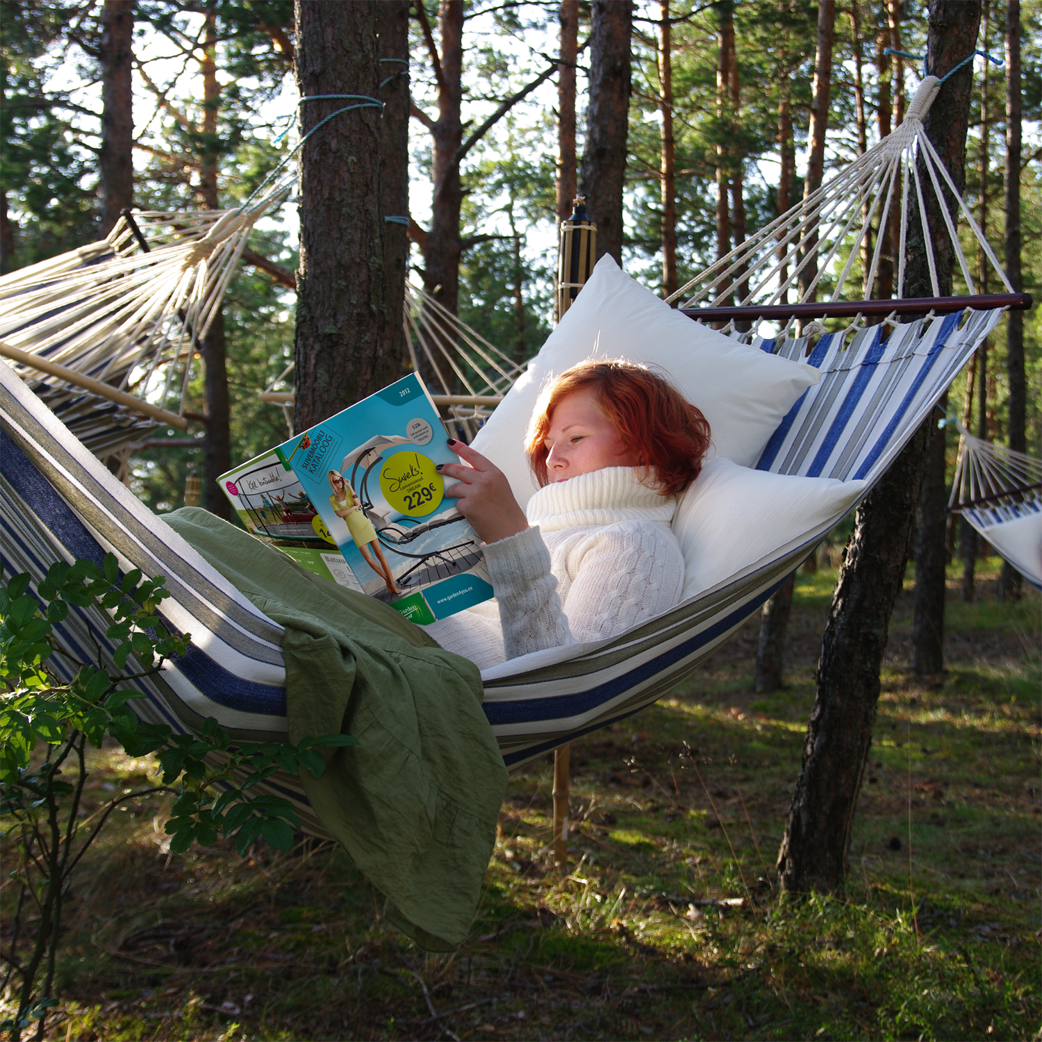 HOOLDUS: toote eluea pikendamiseks kaitske seda ilmastikuolude eest. Ärge jätke kiike pikemaks ajaks päikese või vihma kätte. Kanga ja nööride vastupidavus väheneb UV-kiirguse ja liigniiskuse mõjul ning värvid tuhmuvad. Võimalusel korjake rippkiik peale kasutamist kokku ja hoiustage kuivas, hea ventilatsiooniga ruumis. Enne hoiule panekut laske kiigel täielikult kuivada. Kiike võib pesta käsitsi kuni 40-kraadises vees. Kasutage ainult leebeid pesuvahendeid.