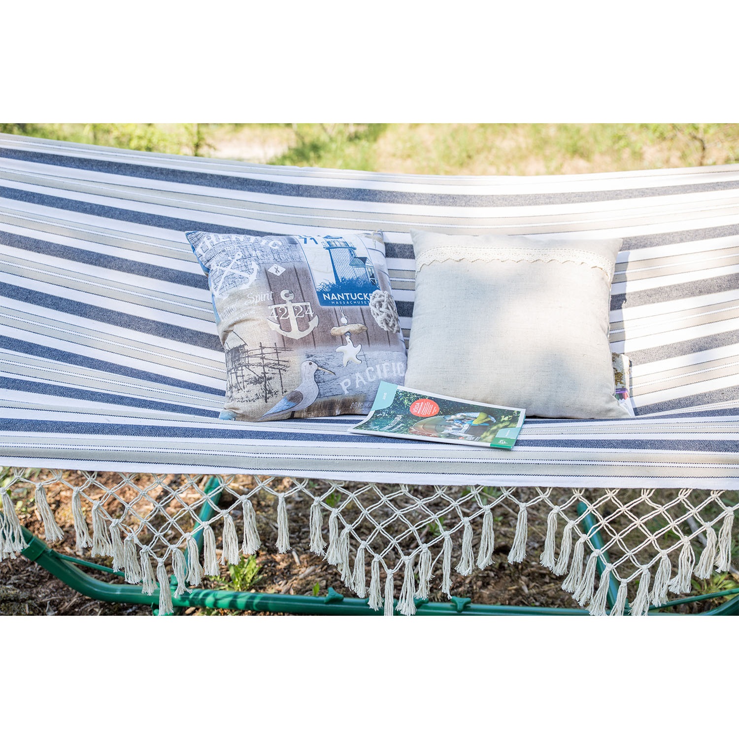 Kiige lamamisosa on valmistatud puuvillasest kangast, ääred on kaunistatud nöörist narmastega.