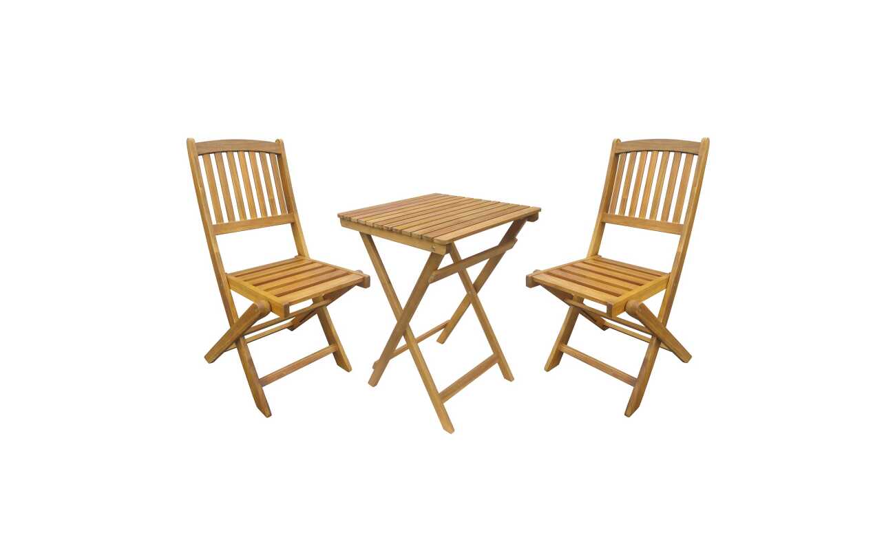 Laud ja toolid on valmistatud akaatsiapuidust ja viimistletud puidukaitseõliga.