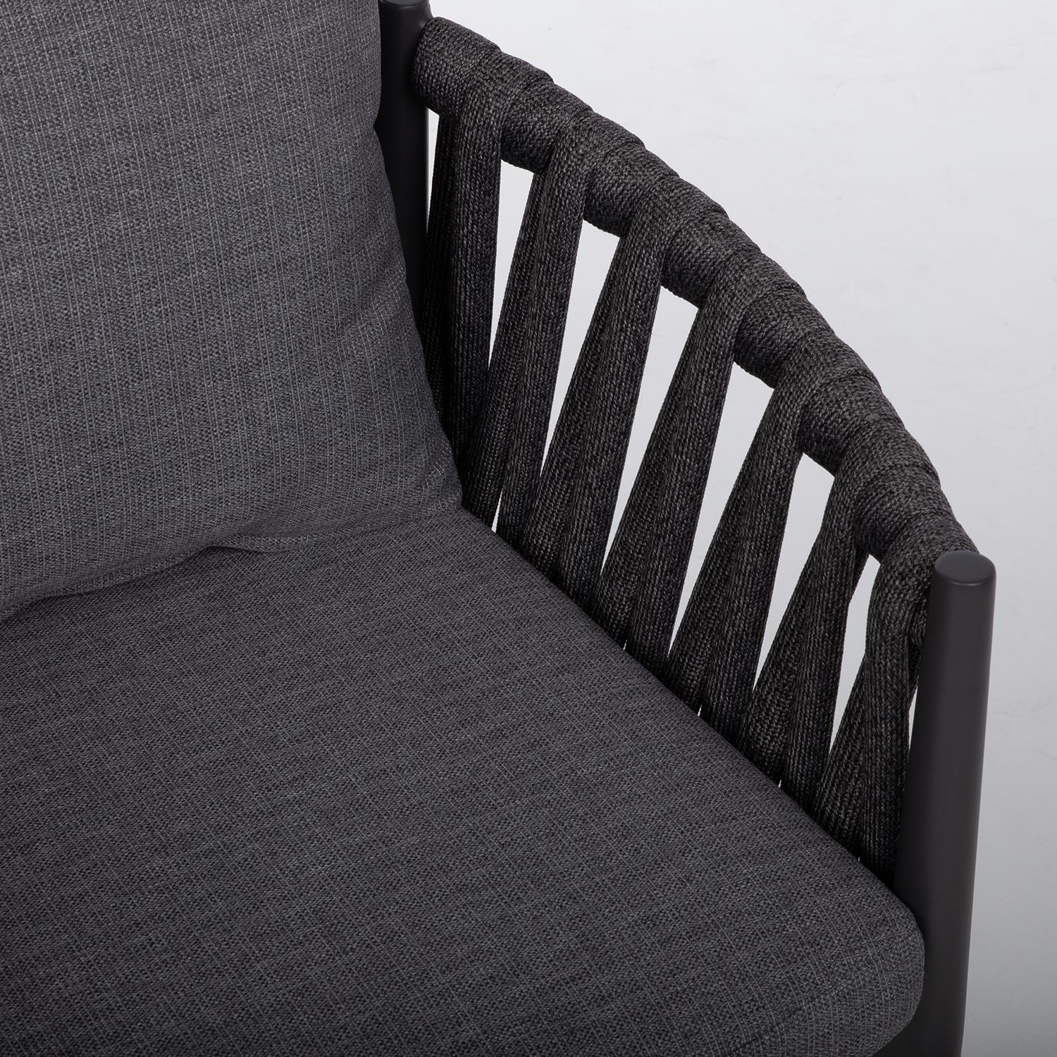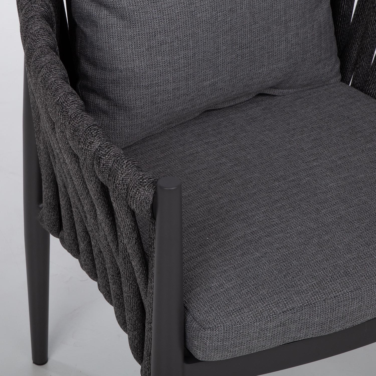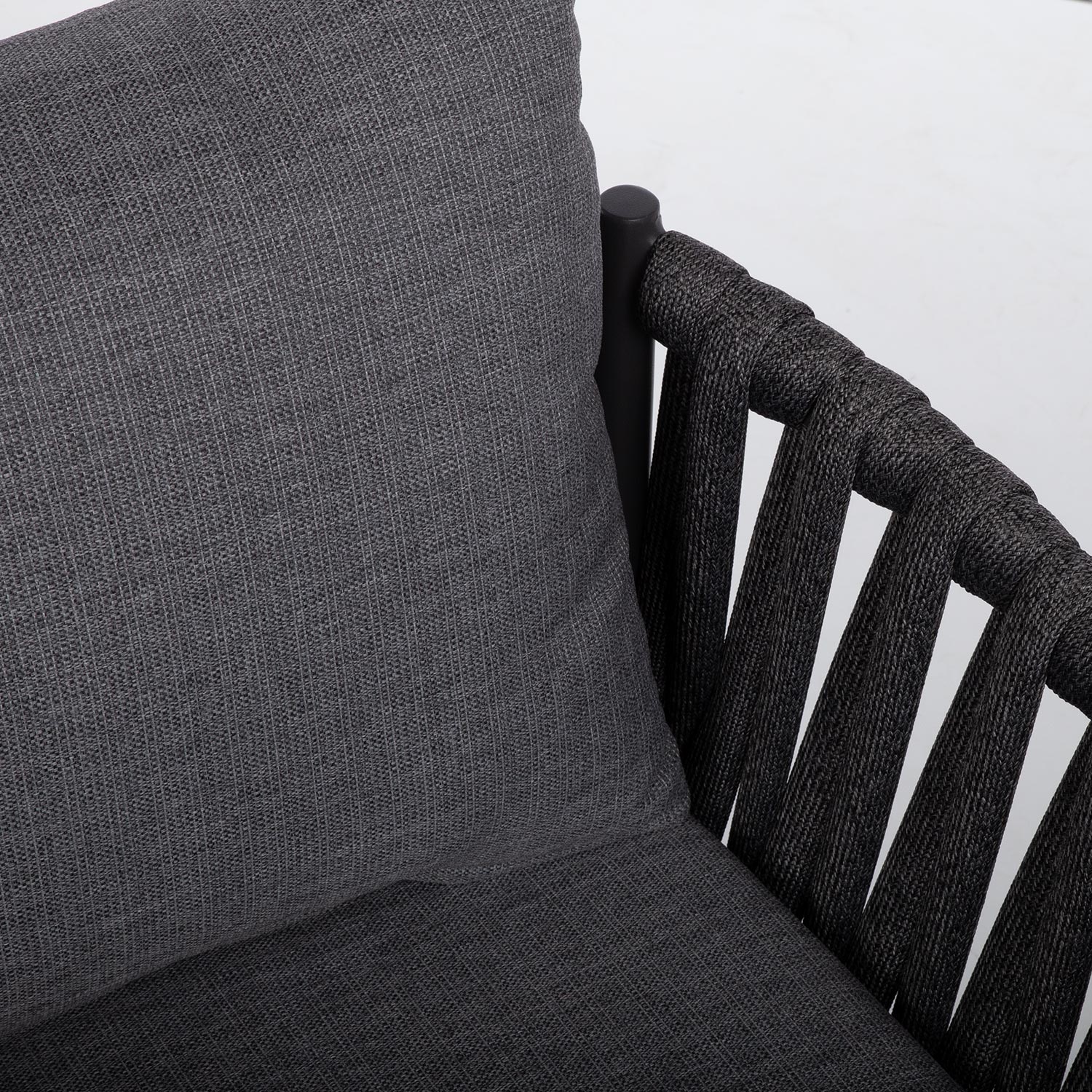 Tooli seljatugi ja küljed on kaetud efektse laia nöörpunutisega.