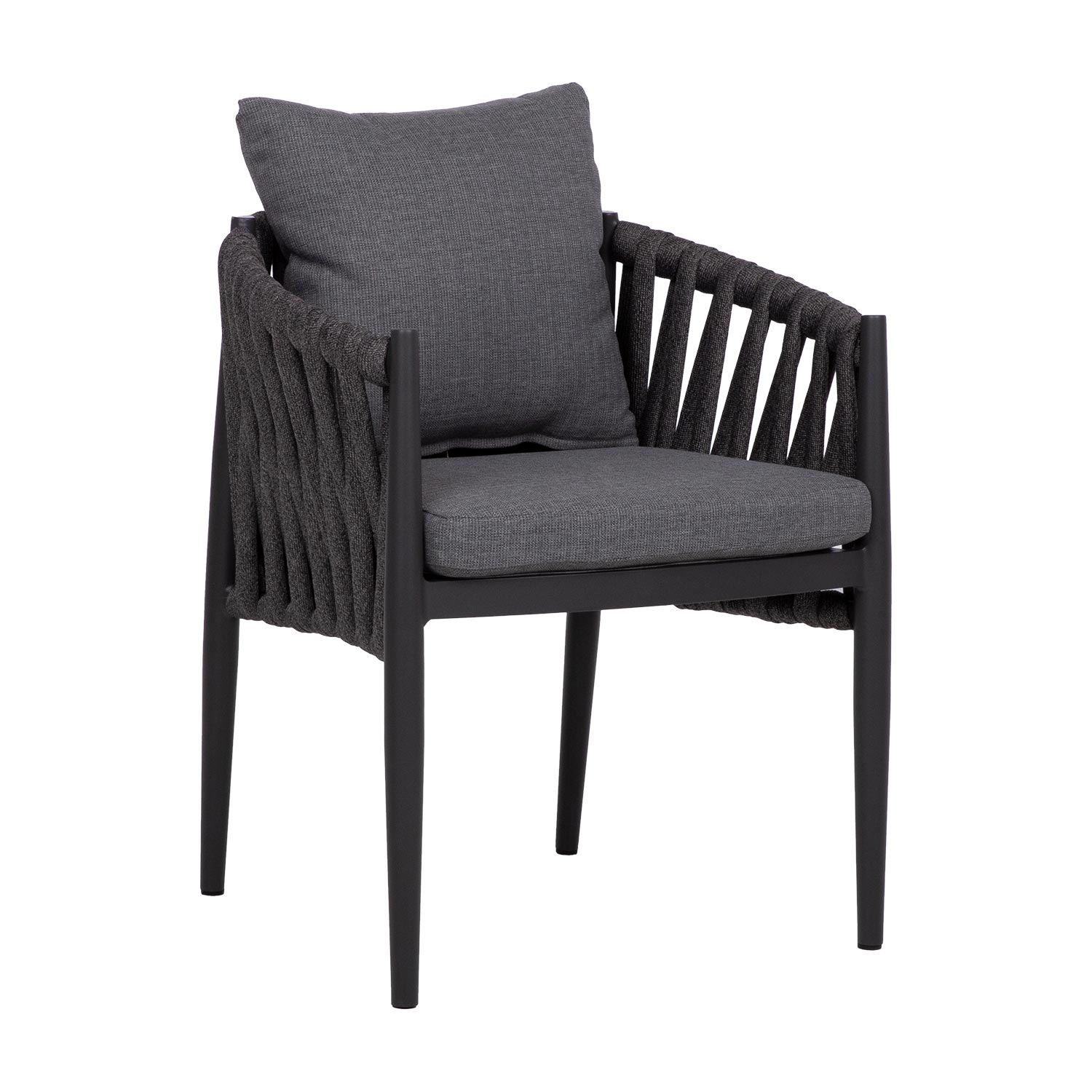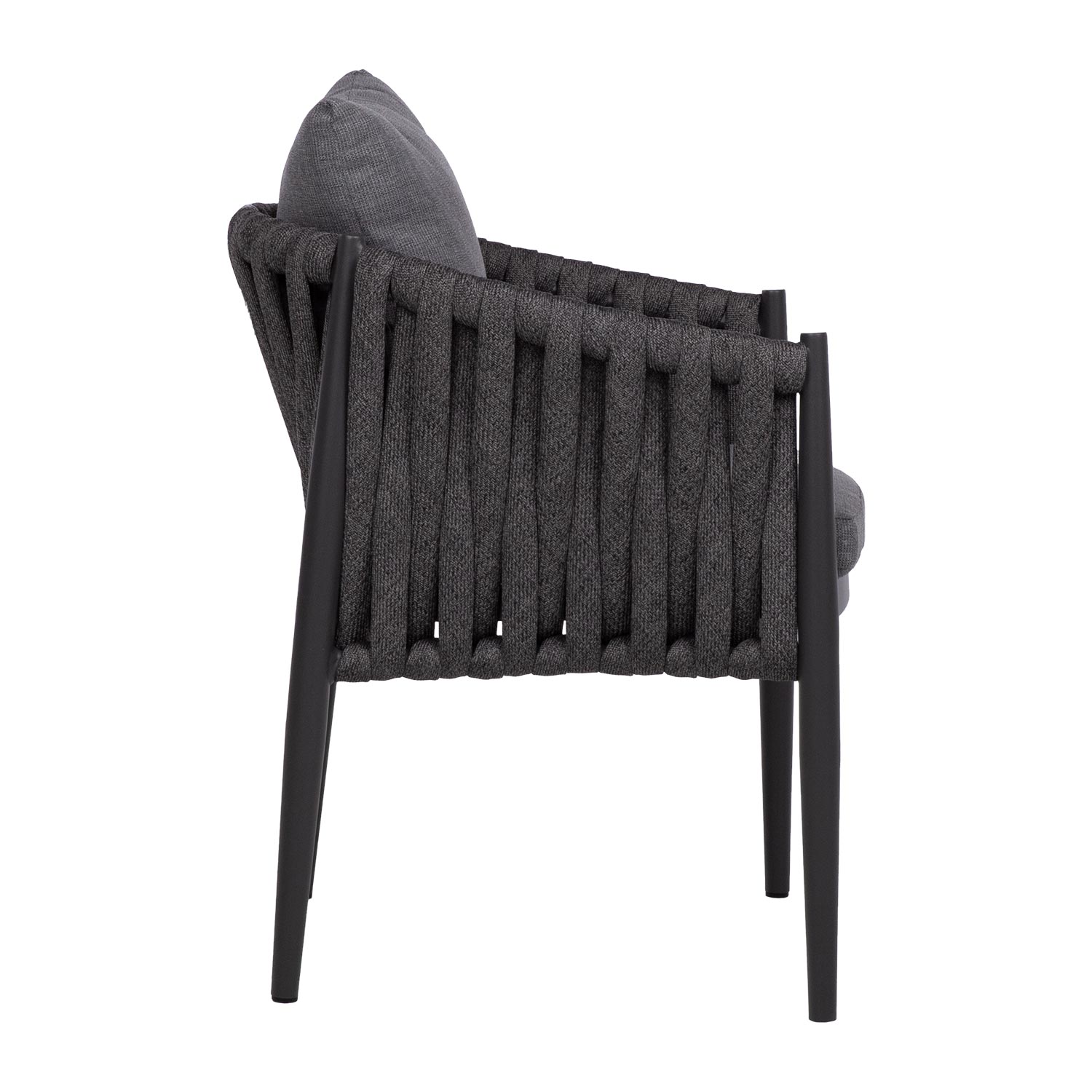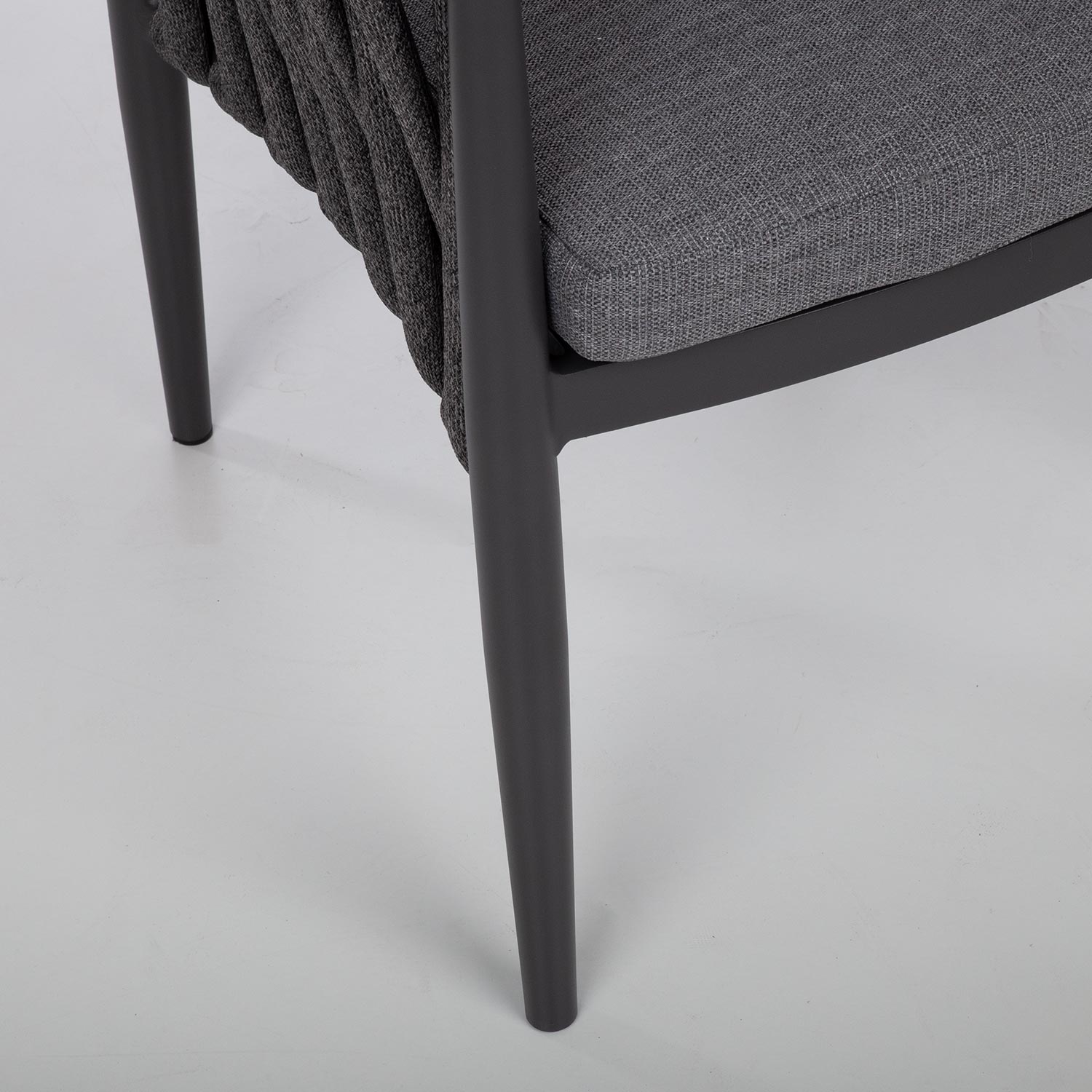 Tooli seljatugi ja küljed on kaetud efektse laia nöörpunutisega.