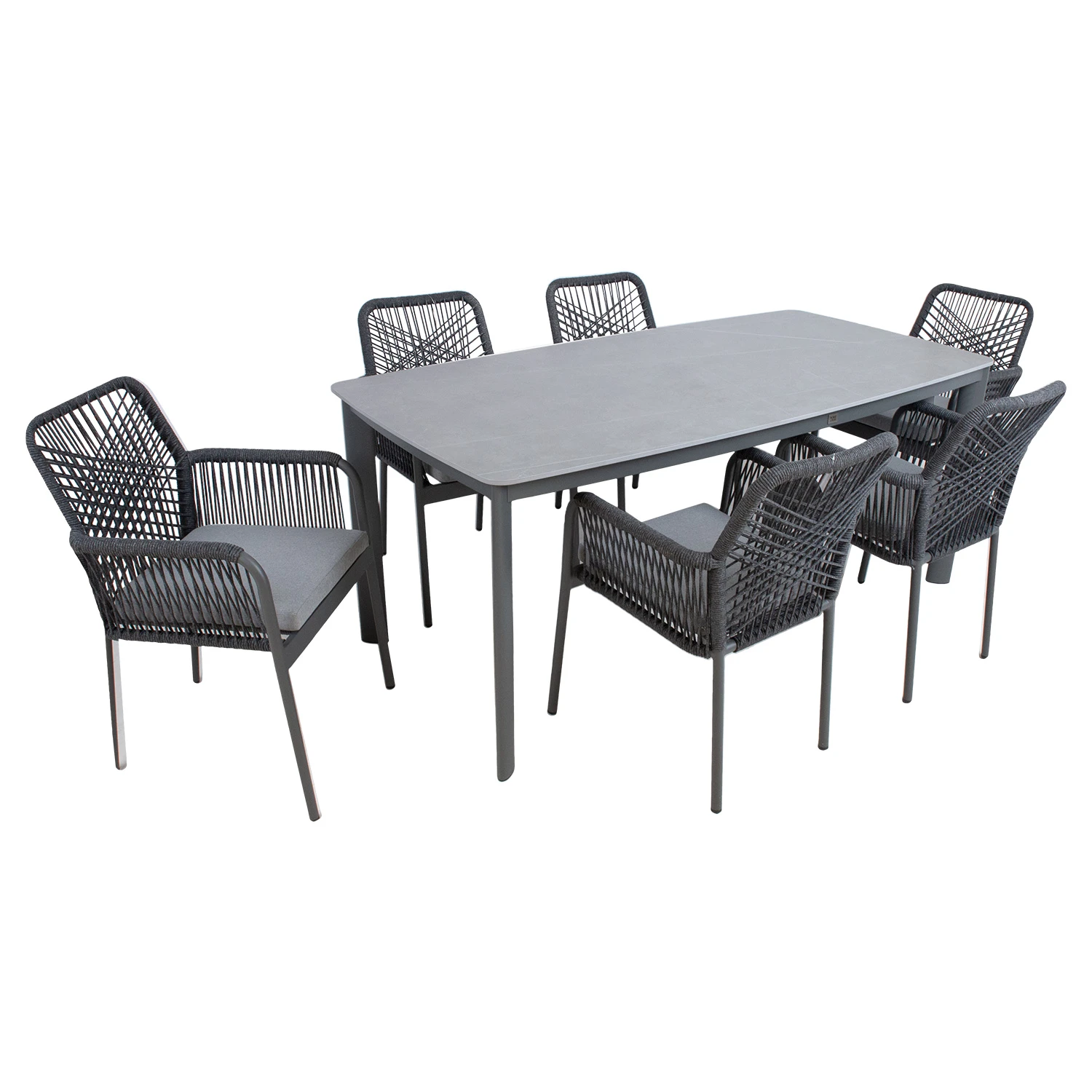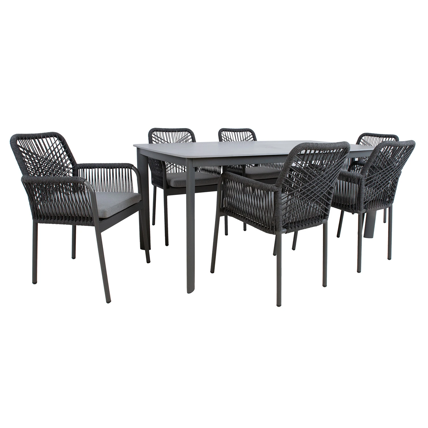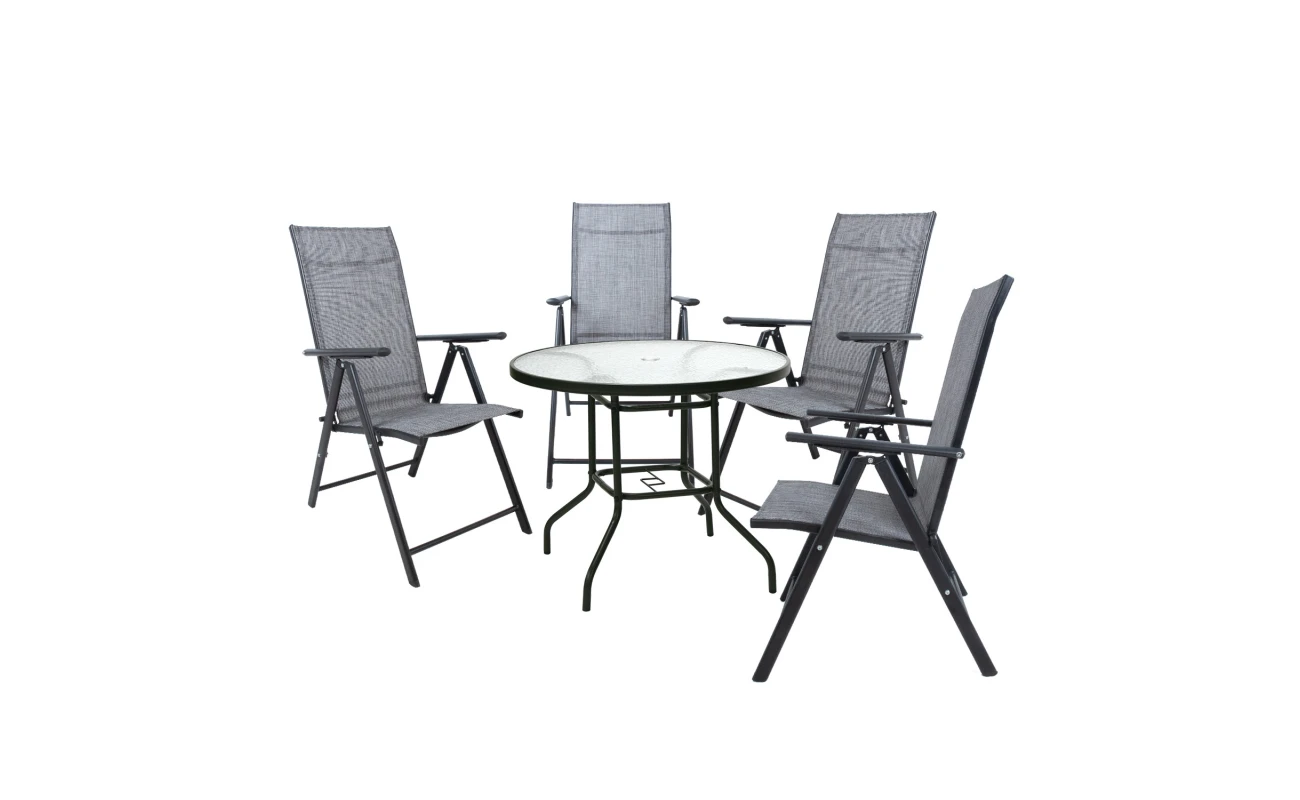 Laua ja toolide jalad ja raam on valmistatud alumiiniumist ja viimistletud halli pulbervärviga.