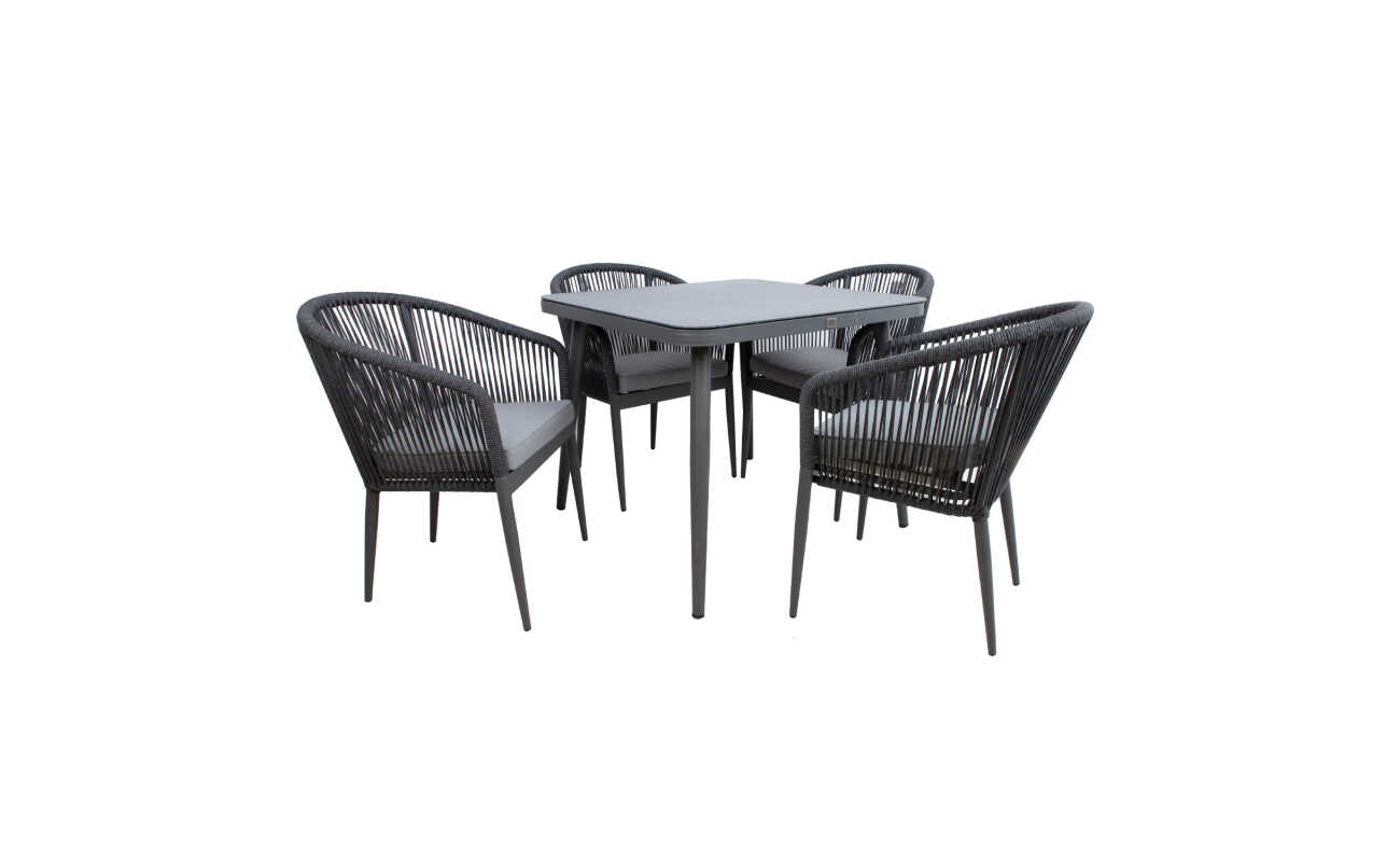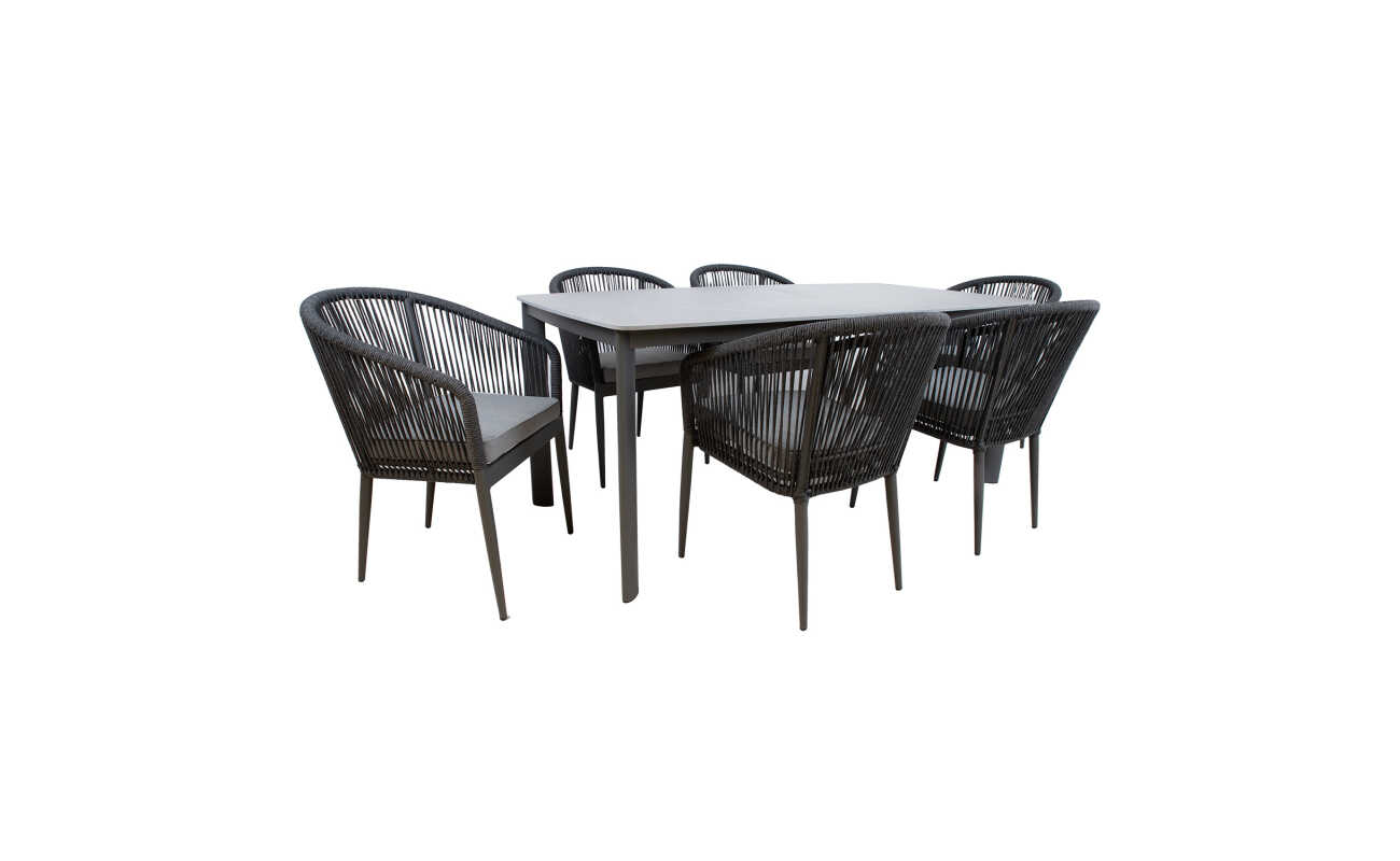 Aiamööblikomplekt BOSLER laud ja 6 tooli. Laua ja toolide raamid on valmistatud terasest ja viimistletud halli pulbervärviga. Laua mõõdud on 150x90xH72cm, lauaplaat: 5mm hall karastatud klaas. Laua keskel on auk päikesevarju jaoks D4cm. Tooli mõõdud on 56x63xH86cm, istme kõrgus raami ääreni 38,5cm. Käetoe kõrgus maast on 62cm. Tooli istmepõhi on kaetud halli textilene kangaga, mis laseb hästi õhku läbi, kuivab kiiresti ja on lihtsalt puhastatav. Pehmed istmepadjad on kaetud halli polüesterkangaga. Istmepadja mõõdud on 48x48xH7cm, seljatoepadja mõõdud on 50x50x15cm. Toolid on virnastatavad. Toode on muutlikes ilmastikutingimustes vastupidav ja väga lihtsalt hooldatav. HOIUSTAMINE: suvehooaja lõppedes soovitame aiamööblit hoiustada siseruumides. Puhastage ja kuivatage mööbel enne hoiule panekut. Kasutage hoiustamiseks kuiva ning hea ventilatsiooniga ruumi.