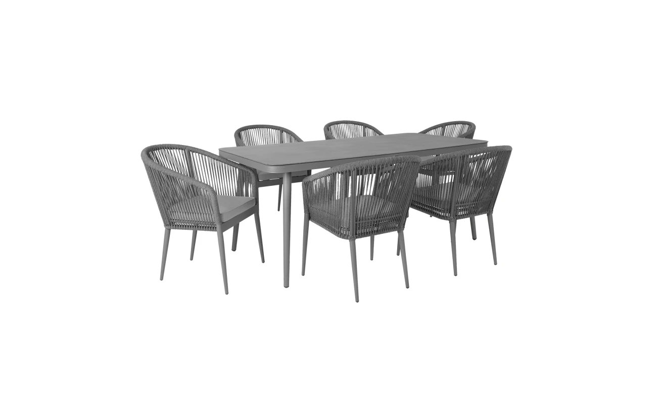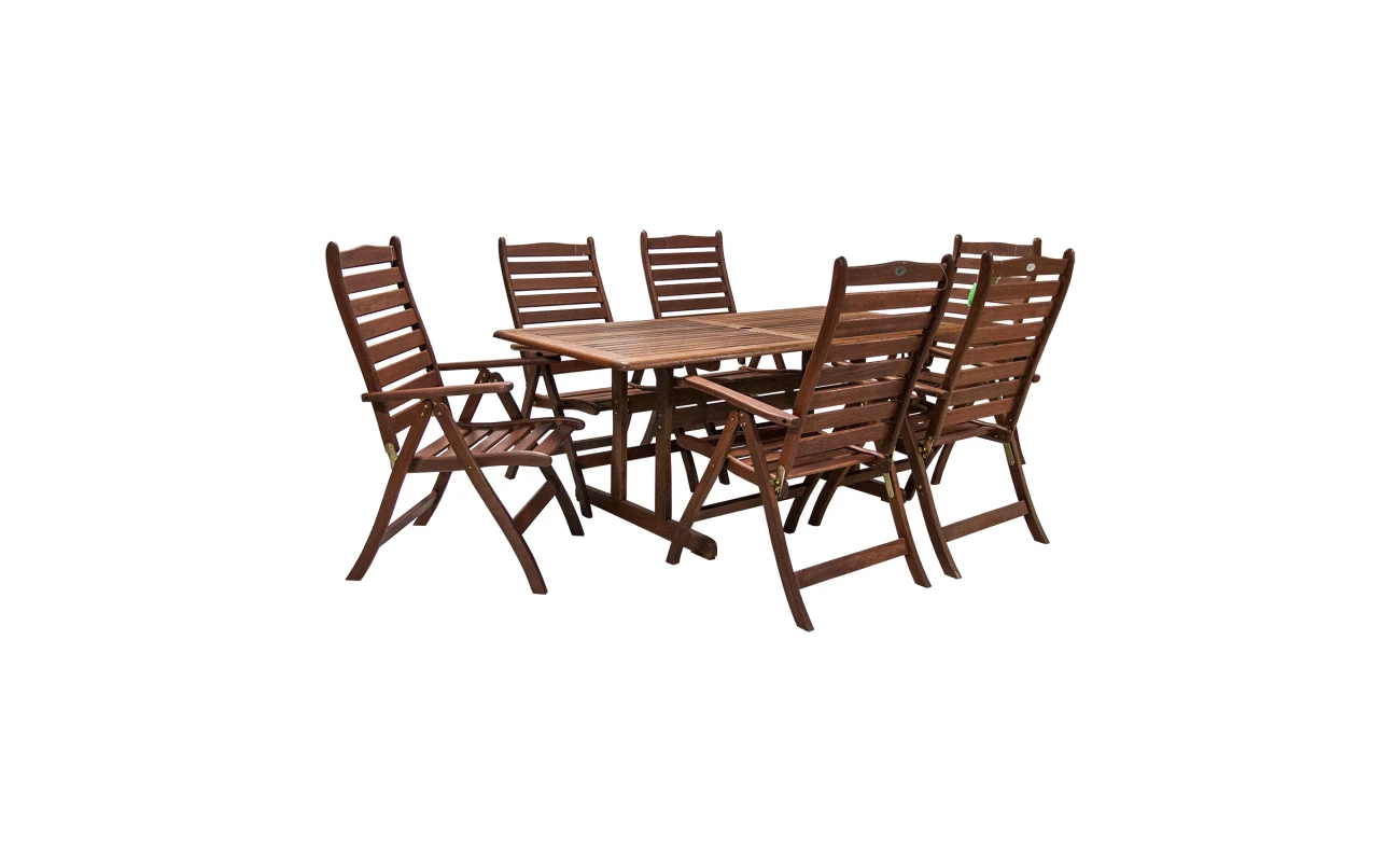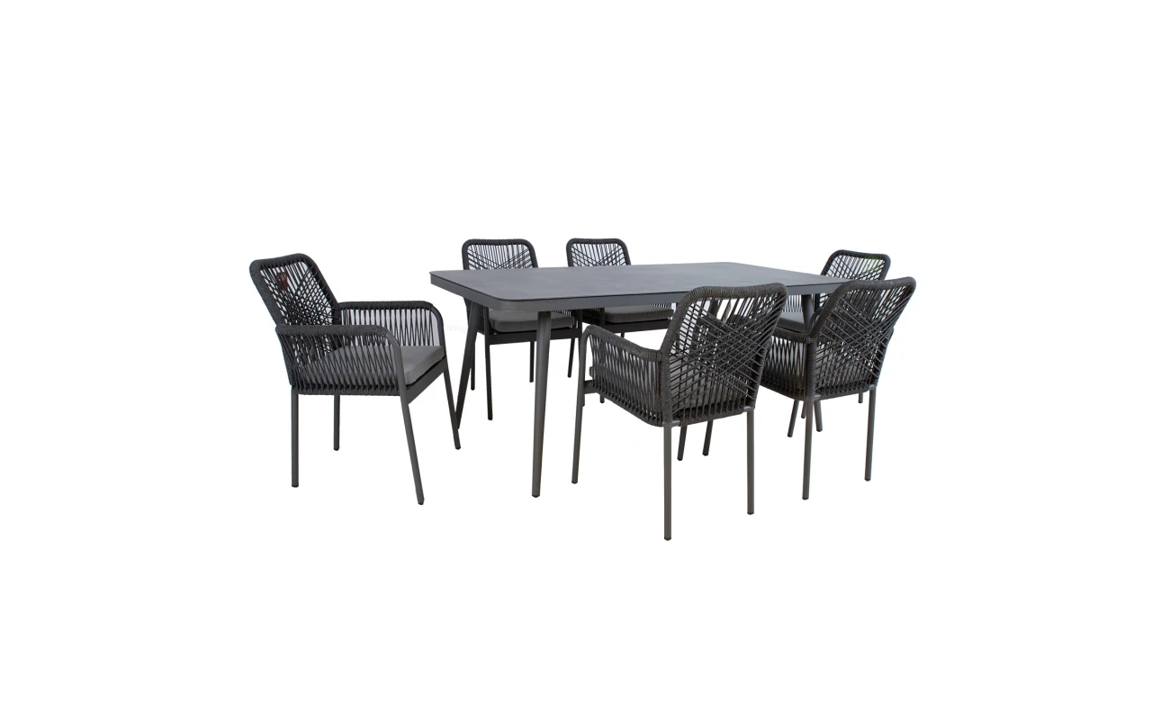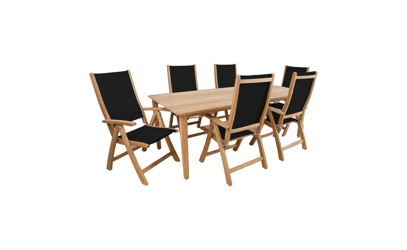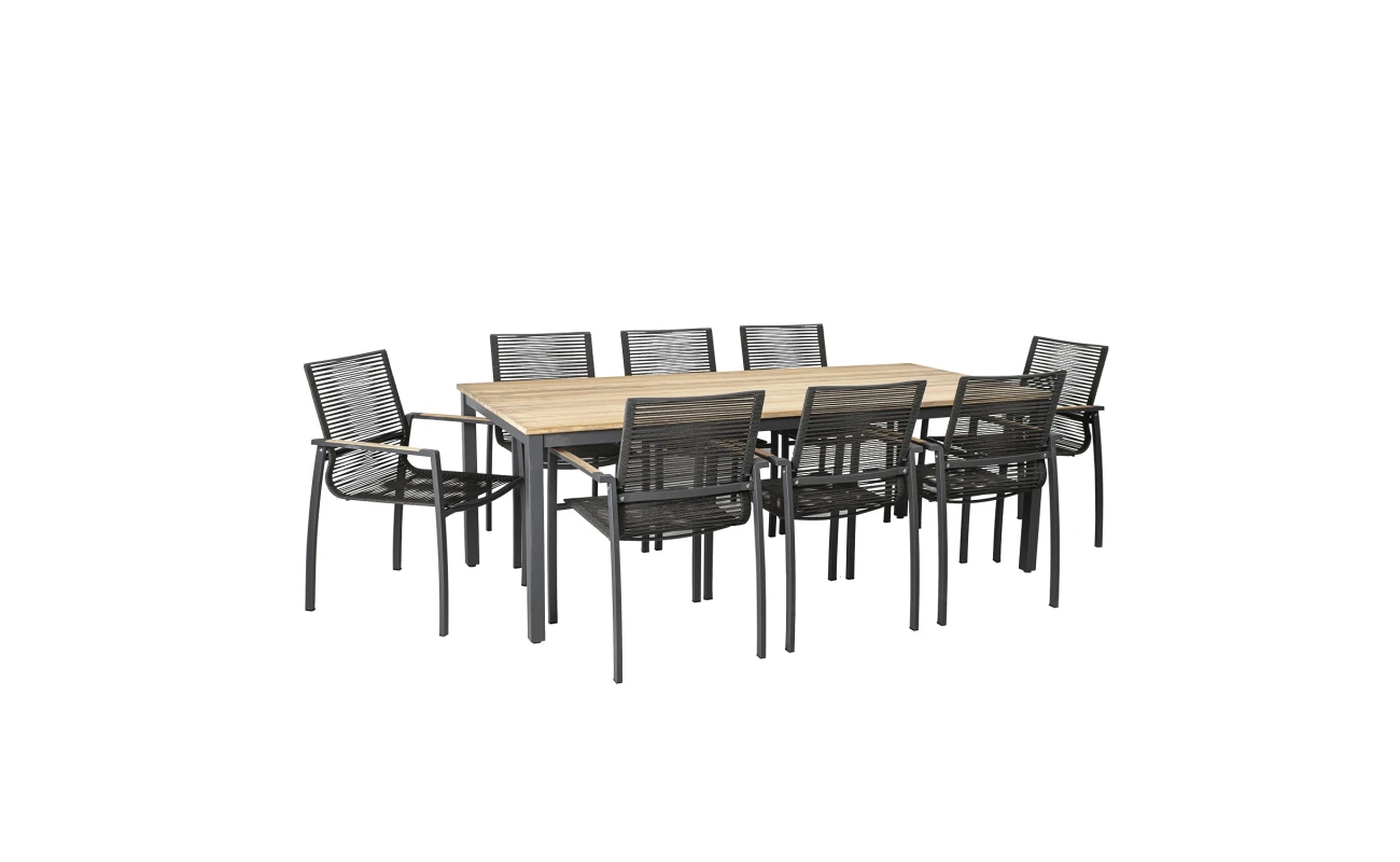 Aiamööbli komplekt HELSINKI laud ja 4 tooli. Laua mõõdud on D120xH74cm. Lauaplaat: tiikpuu dekooriga ilmastikukindel kõrgsurvelaminaat. Laua raam ja jalad on valmistatud alumiiniumist ning viimistletud musta pulbervärviga. Tooli mõõdud on 64x65xH84cm. Tooli jalad ja raam on valmistatud alumiiniumist. Tooli iste ja seljatugi on kaetud musta plastikpunutisega. Istmepadi kuulub komplekti. Padjakate on valmistatud tumehallist polüesterkangagast. Tooli jalad ja alusraam on käsitsi värvitud tiikpuud meenutava bee˛i värviga. Kaalupiirang 120kg. Toode on muutlikes ilmastikutingimustes hästi vastupidav ja lihtsalt hooldatav. Kaitset ilmastikuolude eest vajavad ainult padjad. Välitingimustes kasutatava mööbli eluea pikendamiseks soovitame kasutada välimööbli katteid. HOIUSTAMINE: suvehooaja lõppedes soovitame aiamööblit hoiustada siseruumides. Puhastage ja kuivatage mööbel enne hoiule panekut. Kasutage hoiustamiseks kuiva ning hea ventilatsiooniga ruumi.