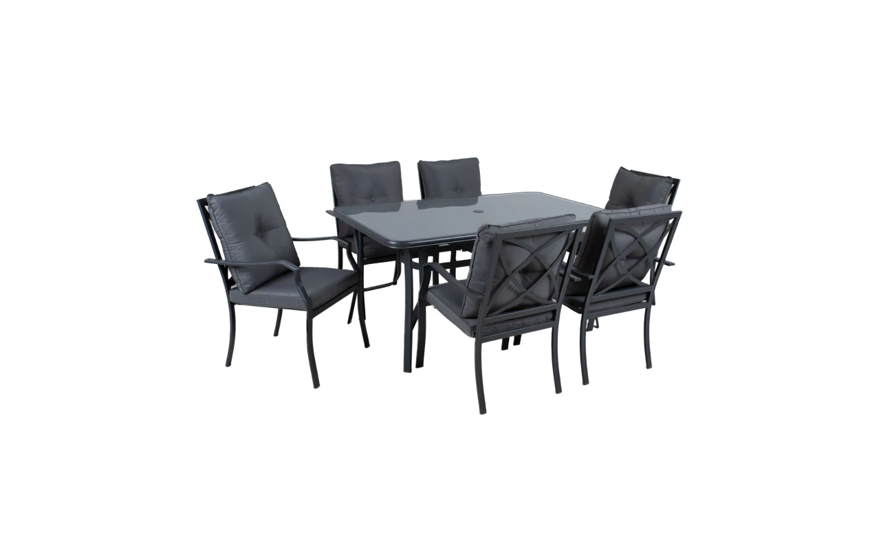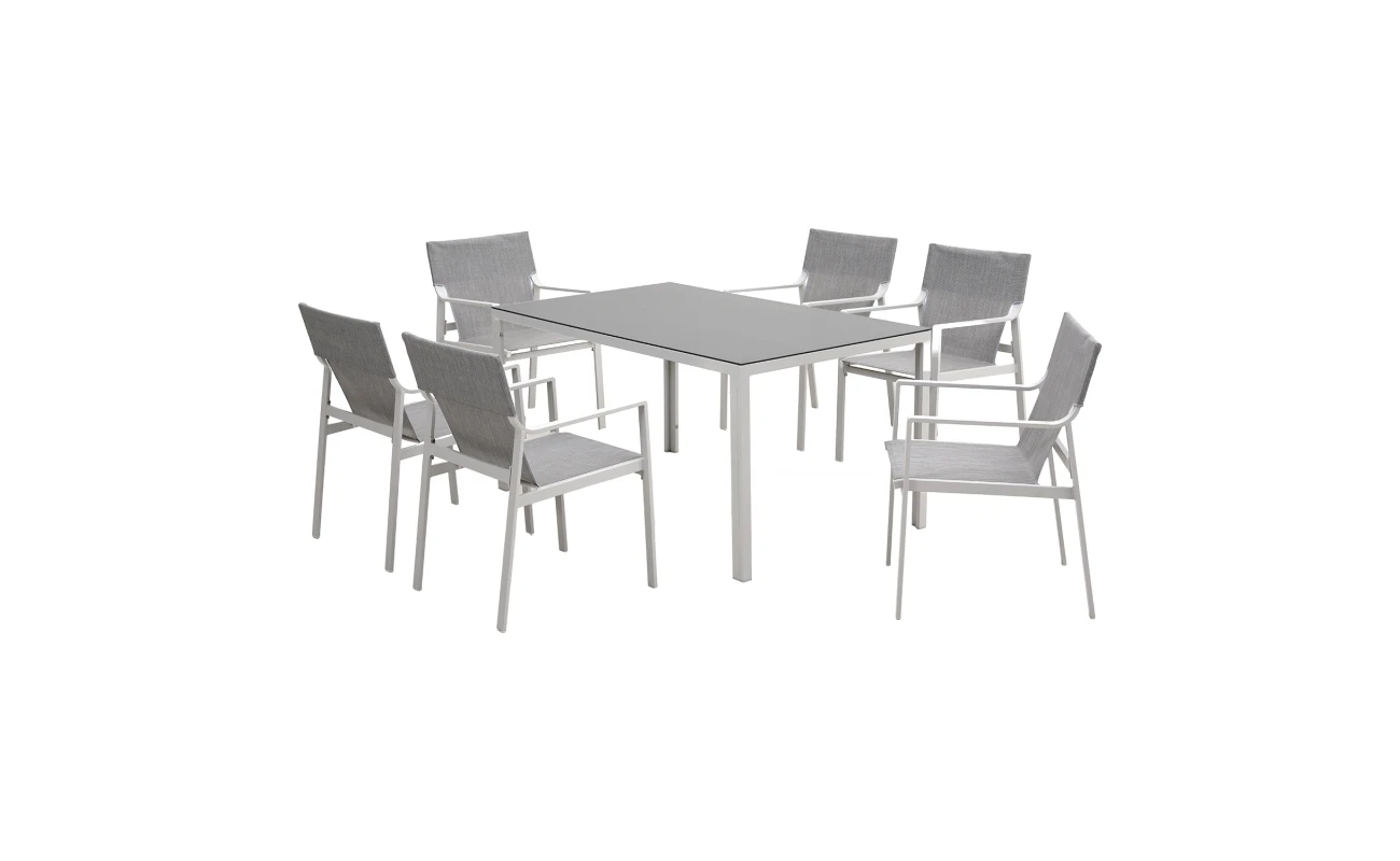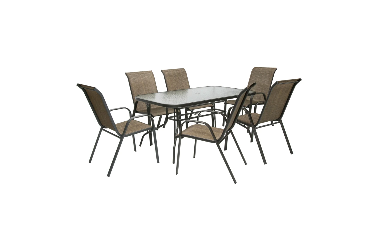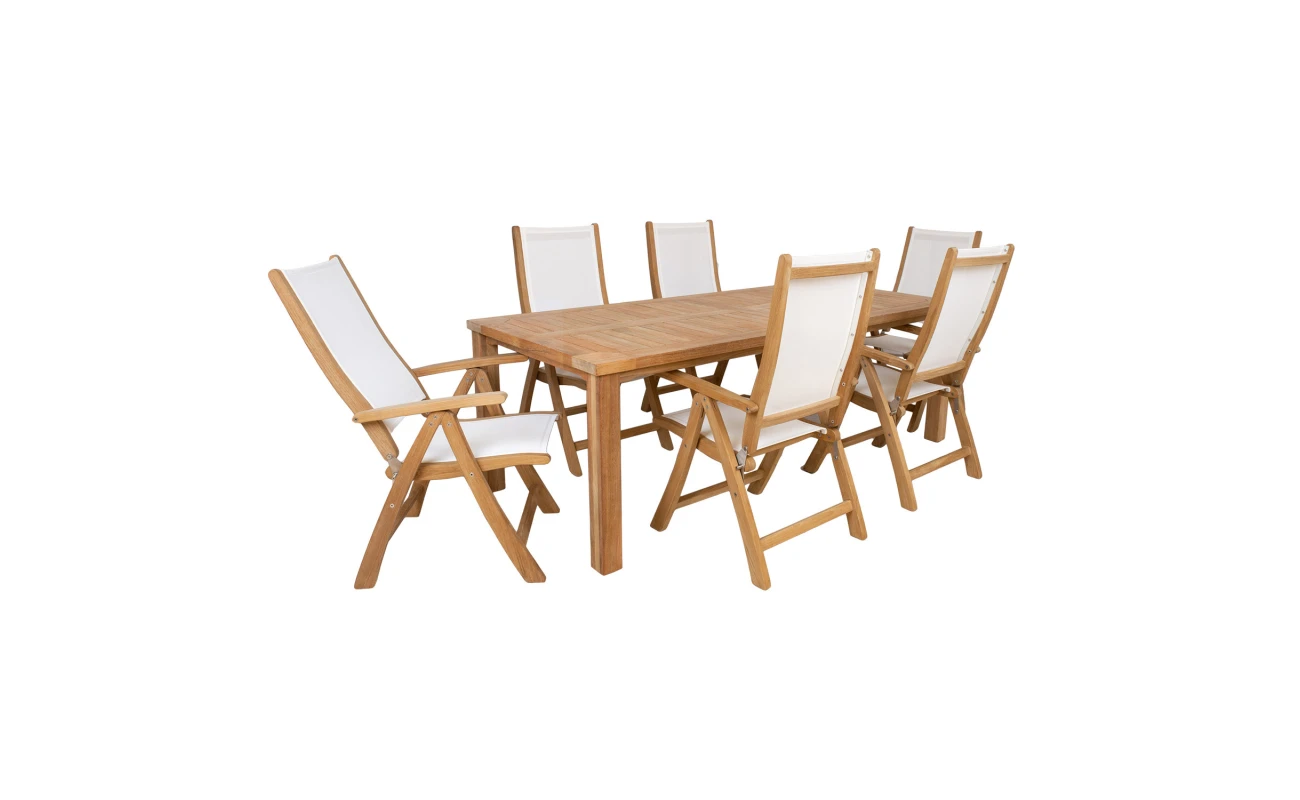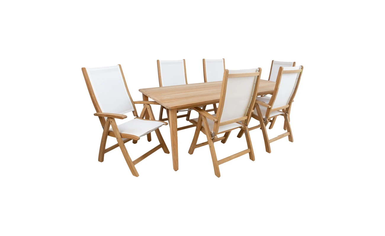 Aiamööbli komplekt HELSINKI laud ja 4 tooli. Laua mõõdud on D120xH74cm. Lauaplaat: tiikpuu dekooriga ilmastikukindel kõrgsurvelaminaat. Laua raam ja jalad on valmistatud alumiiniumist ning viimistletud musta pulbervärviga. Tooli mõõdud on 64x65xH84cm. Tooli jalad ja raam on valmistatud alumiiniumist. Tooli iste ja seljatugi on kaetud musta plastikpunutisega. Istmepadi kuulub komplekti. Padjakate on valmistatud tumehallist polüesterkangagast. Tooli jalad ja alusraam on käsitsi värvitud tiikpuud meenutava bee˛i värviga. Kaalupiirang 120kg. Toode on muutlikes ilmastikutingimustes hästi vastupidav ja lihtsalt hooldatav. Kaitset ilmastikuolude eest vajavad ainult padjad. Välitingimustes kasutatava mööbli eluea pikendamiseks soovitame kasutada välimööbli katteid. HOIUSTAMINE: suvehooaja lõppedes soovitame aiamööblit hoiustada siseruumides. Puhastage ja kuivatage mööbel enne hoiule panekut. Kasutage hoiustamiseks kuiva ning hea ventilatsiooniga ruumi.