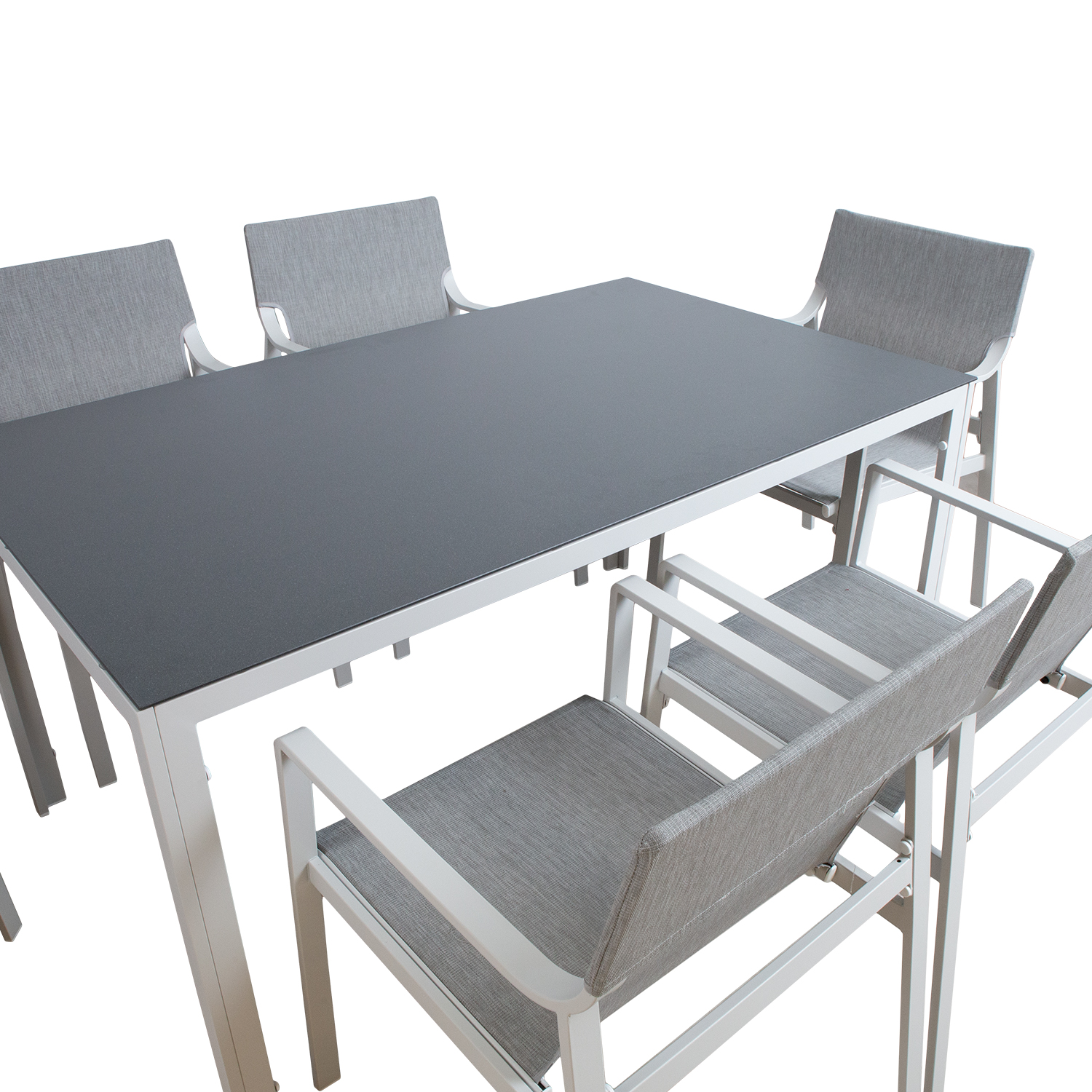 Aiamööblikomplekt OSMAN laud ja 6 tooli. Laua jalad ja raam on valmistatud alumiiniumist ja viimistletud pulbervärviga. Laual on hall 5mm karastatud klaasist plaat. Tooli raam on valmistatud terasest. Tooli textilene iste laseb hästi õhku läbi ja kuivab kiiresti. Laua mõõdud on 150x90xH74cm. Tooli mõõdud on 55x62xH86cm. Kaalupiirang 100kg. Toode on muutlikes ilmastikutingimustes hästi vastupidav ja lihtsalt hooldatav. HOIUSTAMINE: suvehooaja lõppedes soovitame aiamööblit hoiustada siseruumides. Puhastage ja kuivatage mööbel enne hoiule panekut. Kasutage hoiustamiseks kuiva ning hea ventilatsiooniga ruumi.