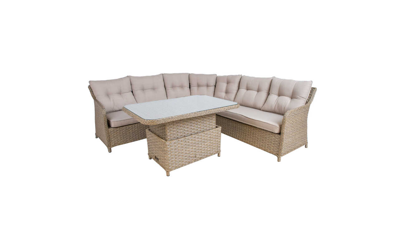 TÄHELEPANU! Mööblikate aitab pikendada mööbli eluiga ning on turvaline kaitse välimööblile, kuid ei taga samasuguseid tingimusi nagu siseruumides hoiustamine. Tugeva vihma korral võivad kattega kaetud mööblile koguneda veelombid. Eemaldage kogunenud vesi esimesel võimalusel. Peske katet vastavalt tootele kinnitatud hooldusjuhendile. Mööblikatte kasutamine ei ole sobiv lahendus aiamööbli ületalve õues hoidmiseks.