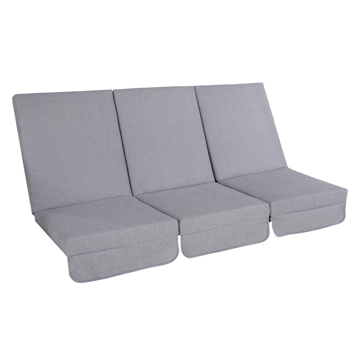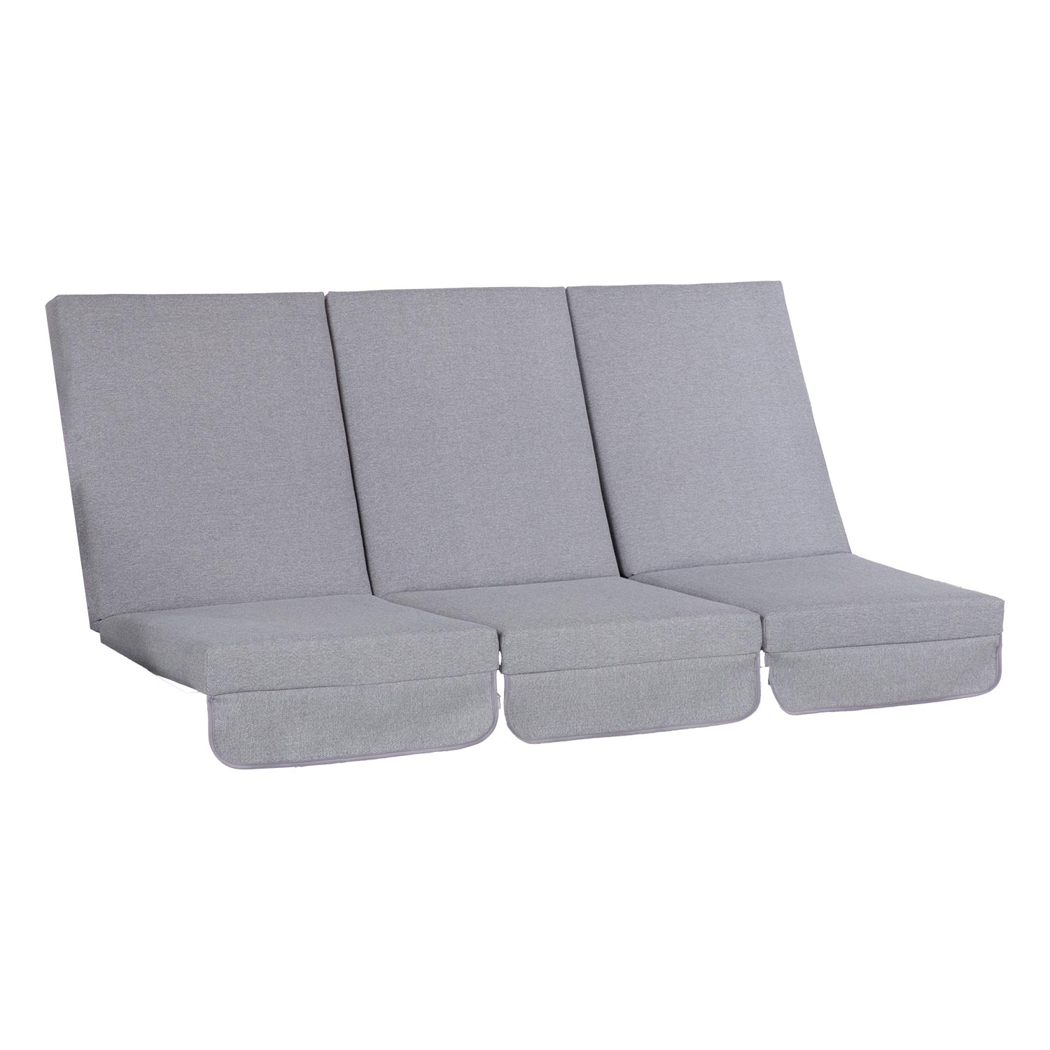 Kiigepadjad MONTREAL 114x52x9cm, 3tk, hall, kangas 468, 100% polüester. Sobib kiigeraamidele MONTREAL, CAIRO. Ühe padja mõõdud: laius 52cm, pikkus 114cm, paksus 9cm. Komplektis 3tk.