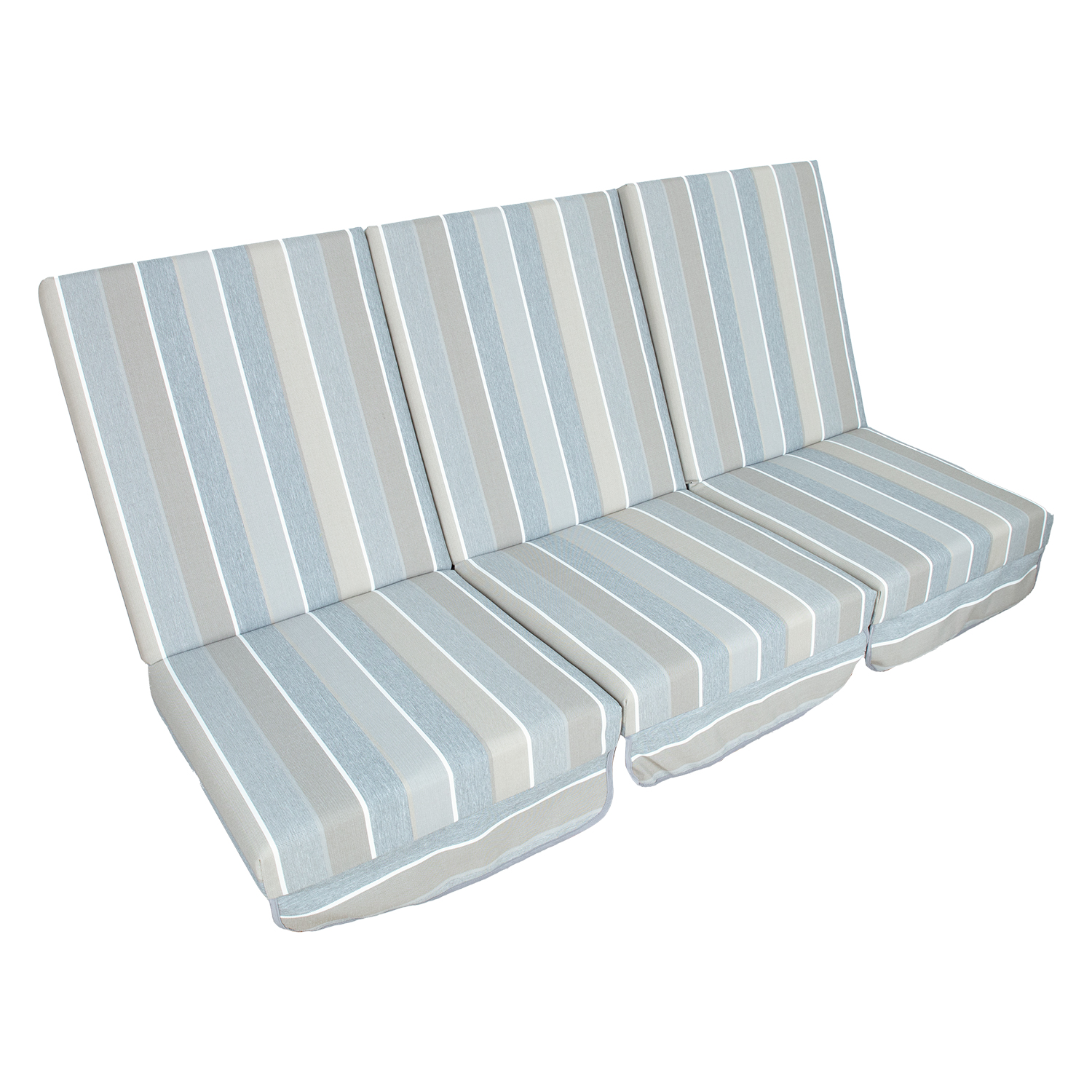 Kiigepadjad MONTREAL 114x52x9cm, 3tk, hall-beež triip. Sobib kiigeraamidele MONTREAL, CAIRO. Kangas 470, 100% polüester. Ühe padja mõõdud: laius 52cm, pikkus 114cm, paksus 9cm. Komplektis 3tk.