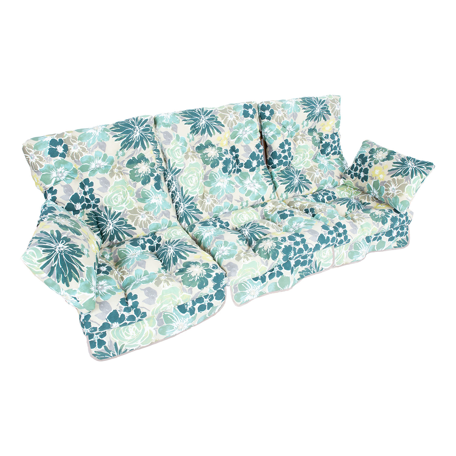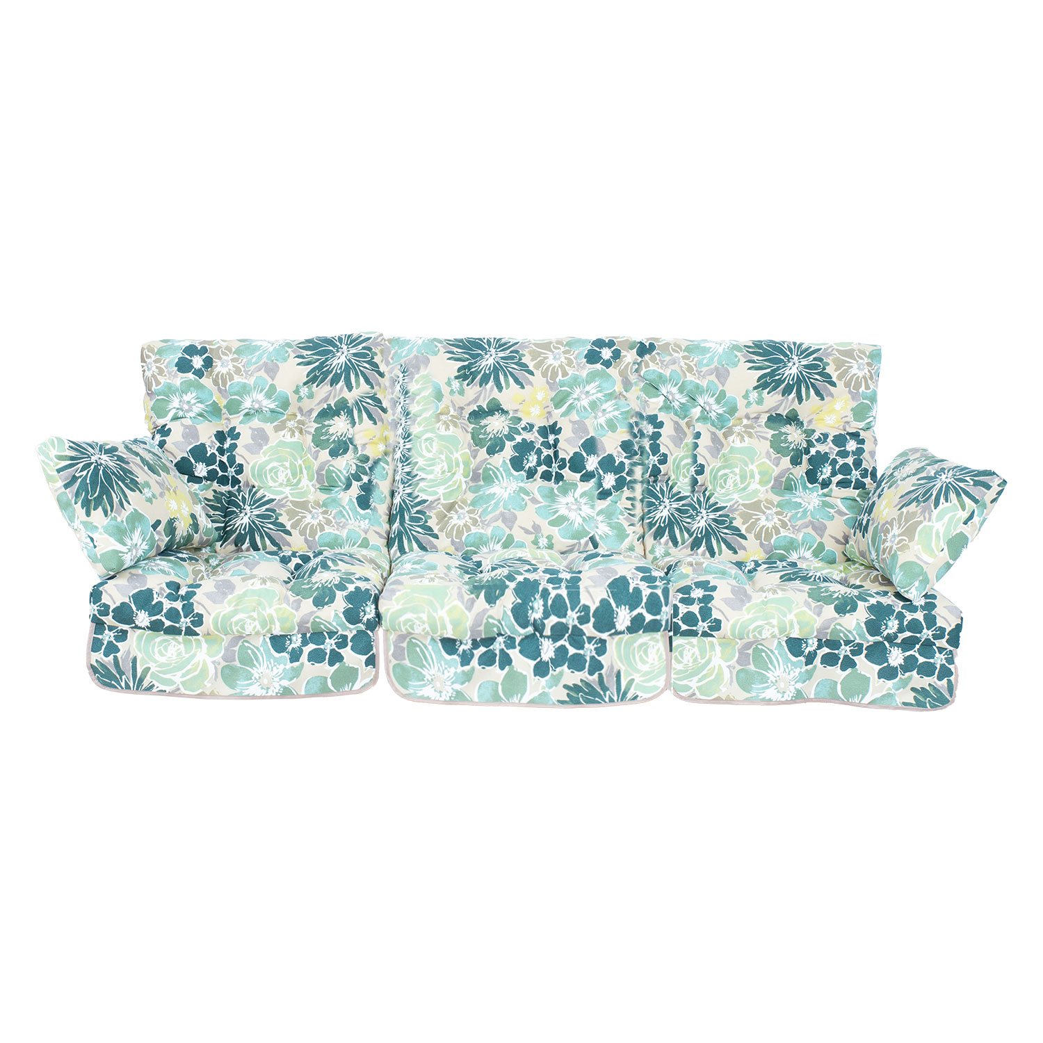Kiigepadjad ROMA hele lillemuster. Kangas 471, 100% polüester. Ühe padja mõõdud: laius 56cm, pikkus 108cm, paksus 10cm. Komplektis 3tk.