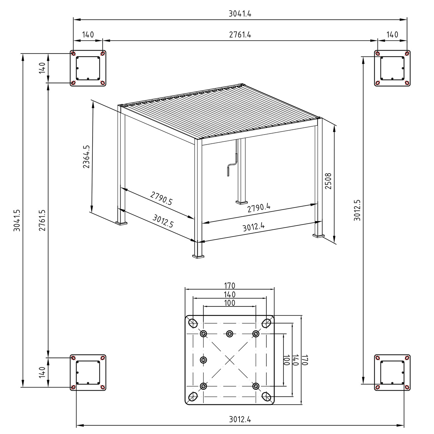 Varikatuse täpsed mõõdud: 3012,5 x 3012,5 x 2508 mm.