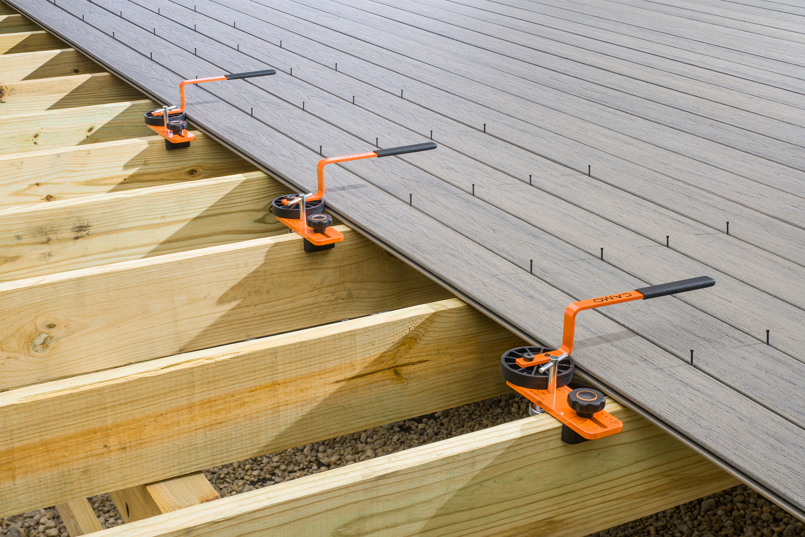 LEVER säästab terrassilaudade paigaldamisel teie aega, kuid täieliku CAMO kogemuse saamiseks – lihtsam, kiirem ja parem töö – kasutage CAMO uuenduslikke universaalseid terrassiklambreid, lindikruvisid ning tööriistu LEVER ja DRIVE.