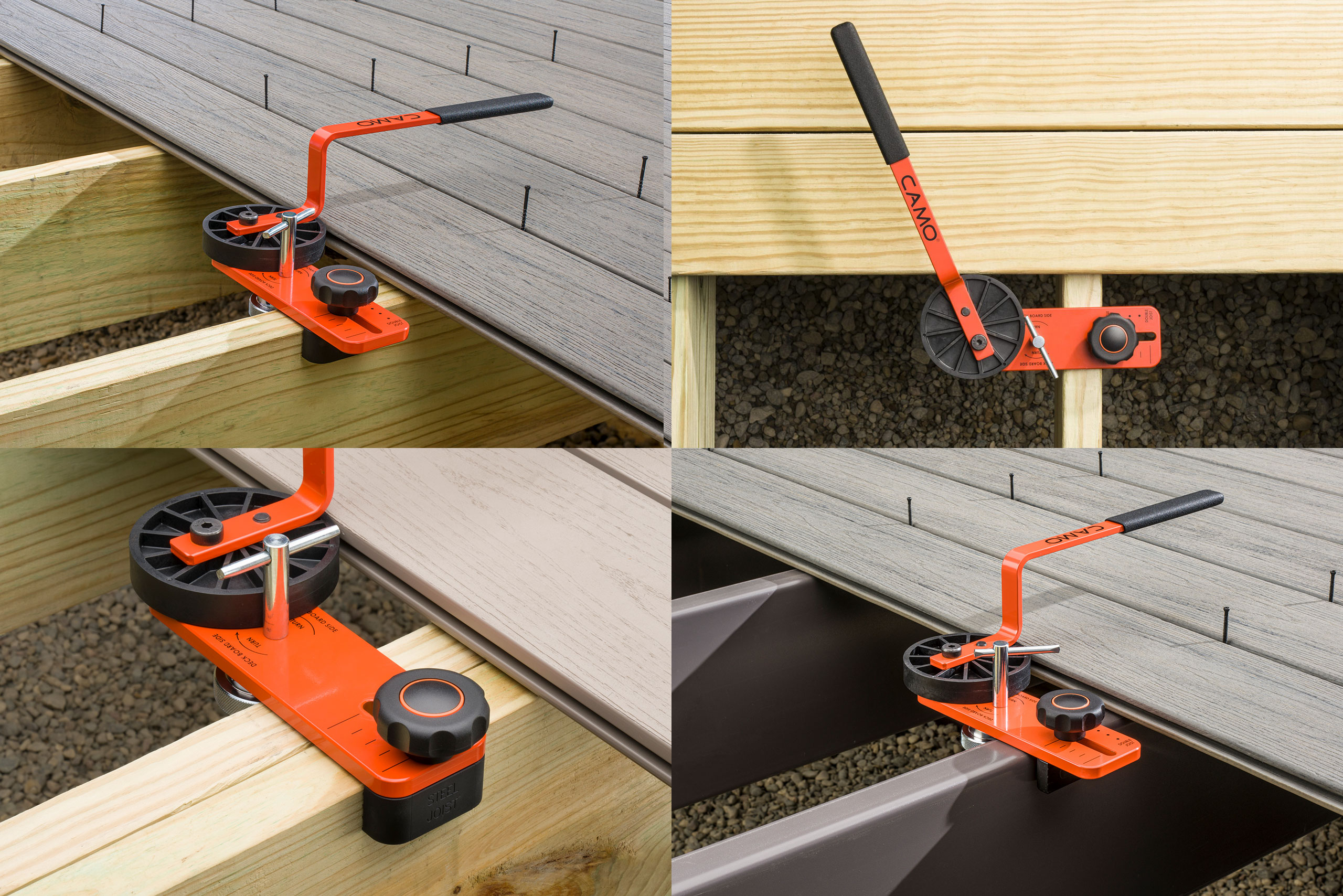 Pole tähtis, millist tüüpi lauda kasutad — immutatud puit, lehtpuit, komposiit või PVC — LEVER lukustab need kõik kindlalt paika. Lisaks kohandub see ühe-, kahe- ja metalltaladega, et saaksid seda kasutada igal paigaldusel.