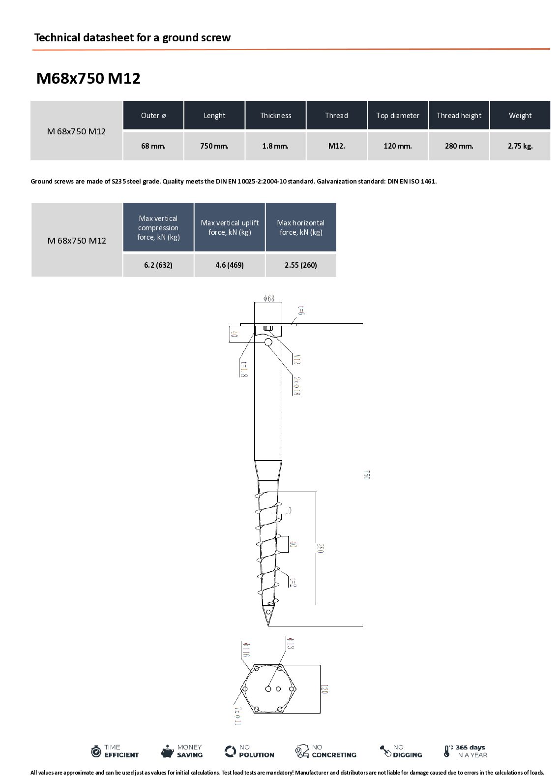 Kruvivai M68x1200x1,8mm KZN. M12 EXTRA