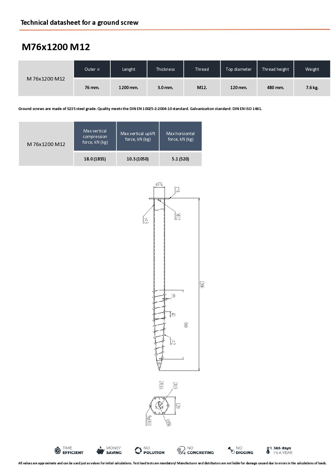 Kruvivai M76x1600x3,0mm KZN. M18x190mm