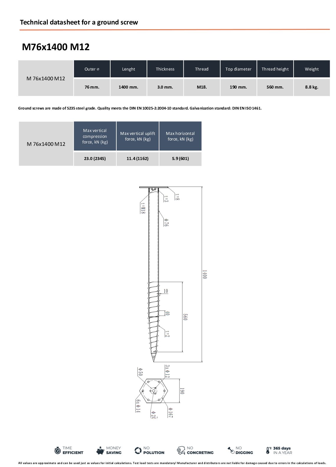 Kruvivai M76x1400x3,0mm KZN. M18x190mm